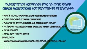 የኢትዮጵያ የንግድና ዘርፍ ማኅበራት ምክር ቤት በንግድ ማሳለጥ (Trade facilitation) ዘርፍ የሚሰጣቸው ዋና ዋና አገልግሎቶች